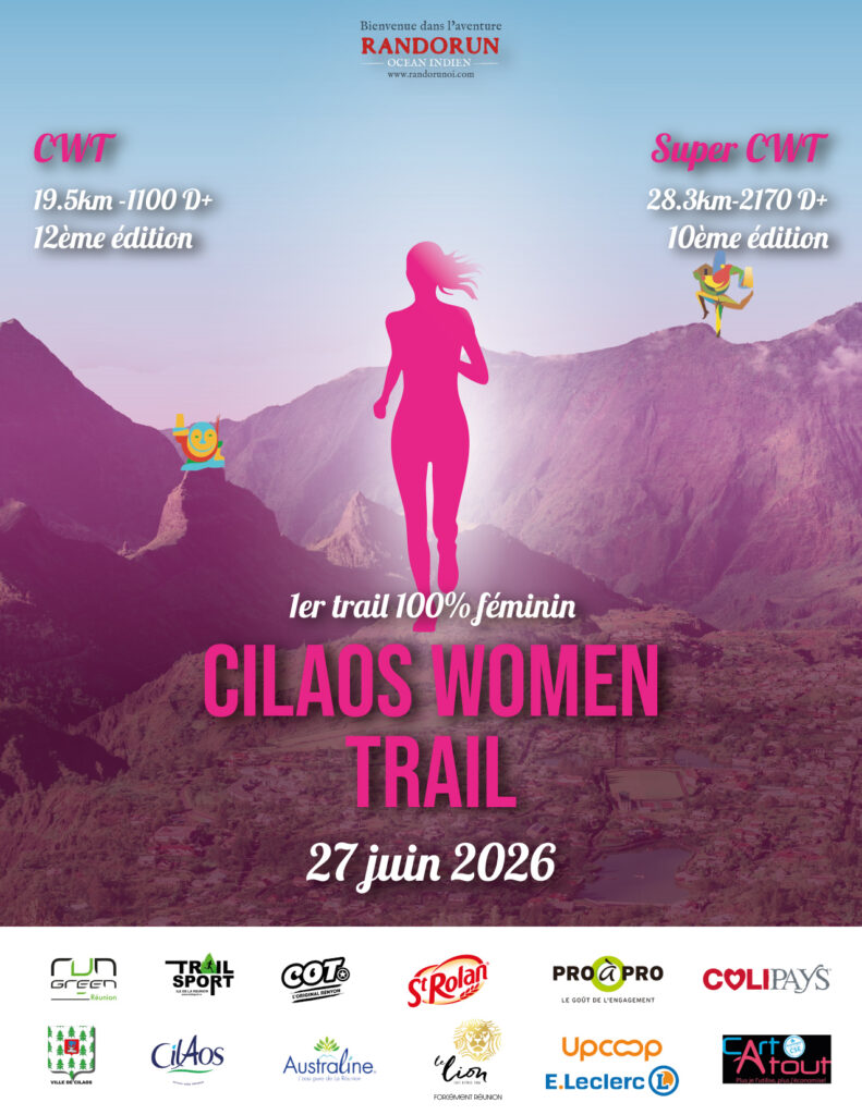 La Cilaos Women Trail (CWT) 2026, 100% féminin est à sa 12ème édition cette année. Deux épreuves au programme, la Super CWT (10ème édition) propose un parcours de 29,8kms avec un dénivelé positif de 2 200m, et la Cilaos Women Trail sur un tracé plus court de 21,2kms avec un dénivelé positif de 1100m.